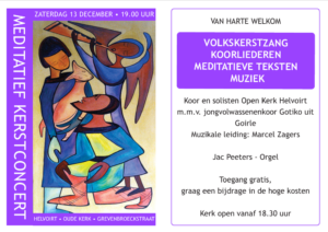 Op zaterdag 13 december organiseert Open Kerk Helvoirt weer het Meditatief Kerstconcert in de oude Sint Nicolaaskerk, Van Grevenbroeckstraat 2 te Helvoirt.